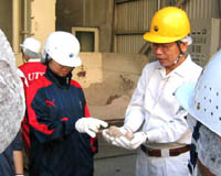 ガラス製品がどのようにつくられ、どのようにリサイクルされているのかを理解するには、ガラス工場の見学にかなうものはありません。 生徒の皆さんには、ガラスびんの製造とリサイクルを行っている工場を見学していただきました。高温と騒音でとても迫力のある現場です。ガラスの製造業にたずさわる担当者が職業意識を伝えました。 | ||||