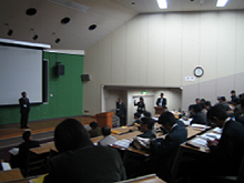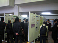 2. 当日の状況 急に寒さが深まった、11月26日(木)、曇り空のもと、キャンパス内の講義棟を会場としたプレゼンが、13:00-15:10、GICメンバーからなされました。その概要は次の通りです。「環境とガラス」(元大工試・日本山村硝子寺井良平)、「革新的ガラス気中溶解技術」(GIC主査・井上悟)、「ガラス溶融と酸素燃焼技術」(太陽日酸・村上真二)、「異種ガラス測定器」(東洋ガラス・滝澤務)、「AGCグループ統合EMSの推進によるグローバルな環境マネッジメントの推進」(旭硝子・五十嵐側仁)。また、ポスターセッションでは、GICから次の会社・機関が参加しました。旭硝子、セントラル硝子、日本電気硝子、日本板硝子テクノリサーチ、石塚硝子、東洋ガラス、日本山村硝子、日本無機、マグ、太陽日酸、日本琺瑯釉薬、東工大、物質・材料機構、都立産技研センター、硝子繊維協会、ニューガラスフォーラム等。 |