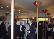 2. 講演テーマと講演者 講演のテーマは、初回が「ガラスの破壊・強度」、次いで「環境とガラス」、「環境負荷低減に向けて」と続き、今回は「ガラスと表面」のもとで、次の5つの講演が行われました。 (1)「ガラス製造と高温融体物性の関わり」(九大:藤野茂准教授) (2)「研磨技術の現状とガラス加工」(九大:土肥俊郎教授) (3)「精密洗浄技術?市場の変化と開発状況?」(花王:林藤克彦) (4)「壜ガラスのキズ防止コート」(石塚硝子:伊藤勇治) (5)「ガラスと薄膜の表面分析」(日本板硝子テクノリサーチ:酒井千尋)。 また、ポスターセッションでは、GICからは、次の会社・機関が参加しました。(1)旭硝子中研 (2)日本板硝子、オリンパス (3)日本板硝子テクノリサーチ (4)セントラル硝子 (5)日本電気硝子 (6)日本山村硝子、産総研 (7)東洋ガラス (8)ハリオグラス (9)コーニング研 (10)信越石英 (11)古河電工。 |